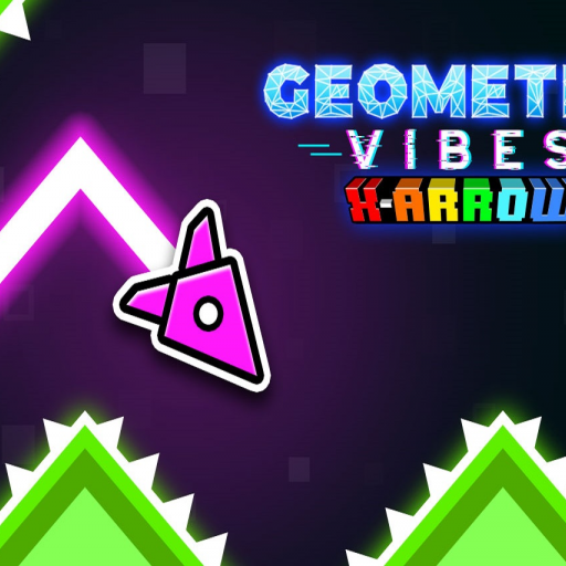 Geometry Vibes X-Arrow is an arcade wave runner where you control a glowing arrow flipping through spike mazes. Hold to wave up at an angle, release to drop – weave tight corridors with rapid taps. One touch to spikes ends the run. No checkpoints, pure memorization and stamina across escalating patterns.